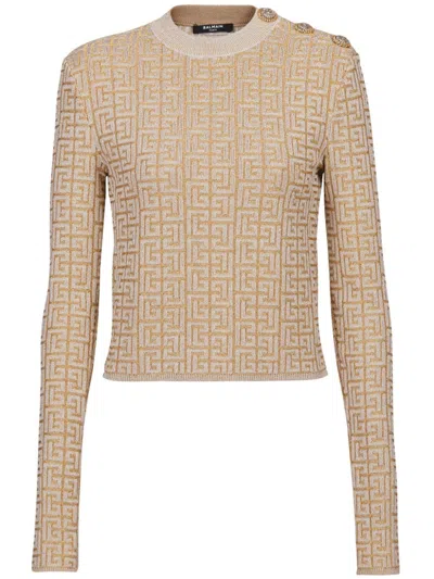 BALMAIN Labyrinth Pattern Knitted Top In Brown