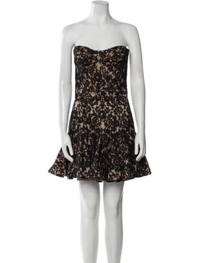 Balmain A-Line Dress Brown Lace Pattern Lace & Ruffle Accents Strapless Exposed Zip Closure at Back Designer Fit: Dresses by Balmain are typically designed for a slim fit. | Balmain Lace Pattern Mini Dress in Brown, Women's US6, FR38 | M
