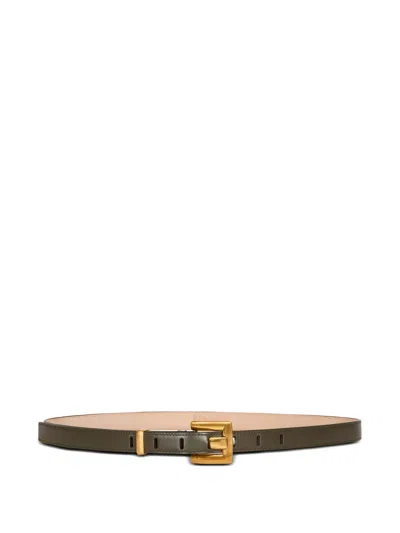 green gold-tone hardware buckle fastening