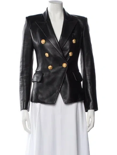 Balmain Leather Blazer Black Pointed Collar Flap Pockets & Button Closure Designer Fit: Designed for a slim fit, those with a curvy figure may wish to take one size up. | Balmain Leather Blazer w/ Tags in Black, Women's US2, FR34 | XS