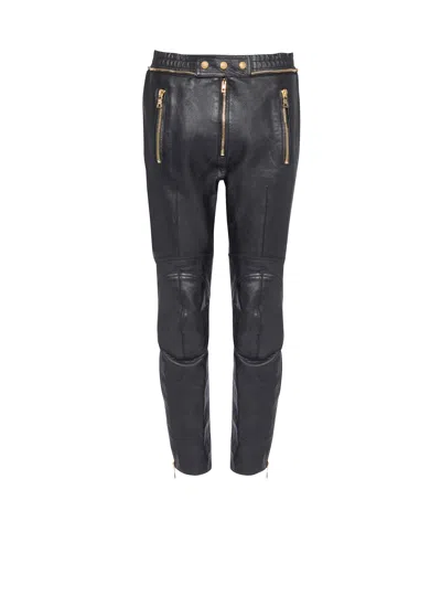 Leather pants Elasticized waistbandConcealed zip and embossed gold-tone button flyZip side pocketsFitted cut Fits true to sizeSelect your usual size The model is wearing FR size 36 The model's height is 177 cm Main material: 100% LAMBSKIN Made in France Item: YF1QH000LB64