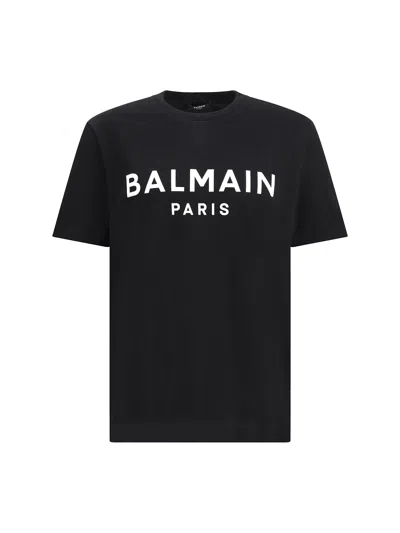 BALMAIN Logo Embossed Cotton T Shirt In Black