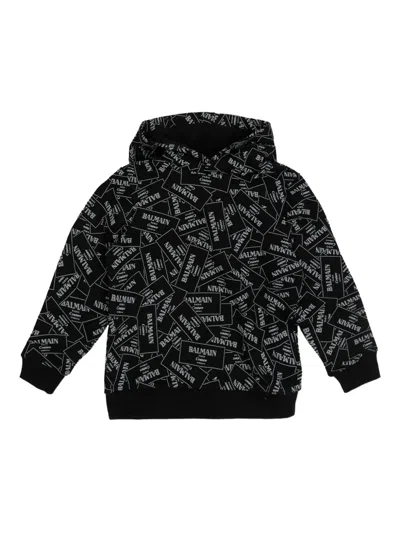 black cotton all-over logo pattern ribbed cuffs ribbed hem