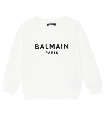 Look to Balmain Kids for label-signature designs in mini-me sizes, such as this white sweatshirt. Printed with the house logo across the chest, it's cut from loopback-cotton jersey to a relaxed silhouette with ribbed edges.