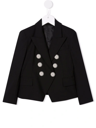 BALMAIN Kids' Logo-button Double-breasted Blazer In Black
