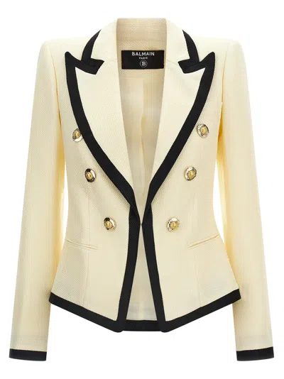 BALMAIN Maxi Shoulder Strap Blazer In Neutral