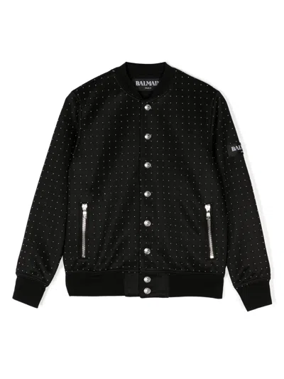 BALMAIN Kids' Micro-dot Print Bomber Jacket In Black