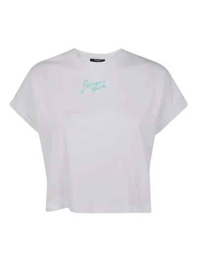 BALMAIN Mini Cropped T-shirt With Statement Print In White