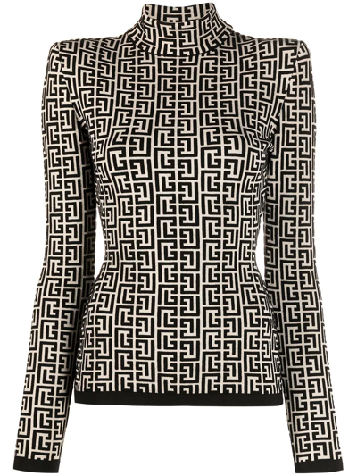 BALMAIN Monogram Jacquard Sweater In Multicolor