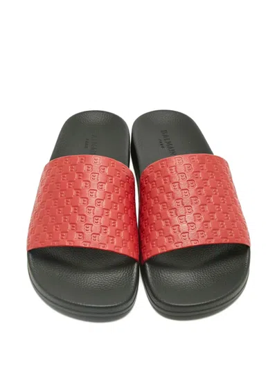 Pre-owned Monogram Leather Slides In Red