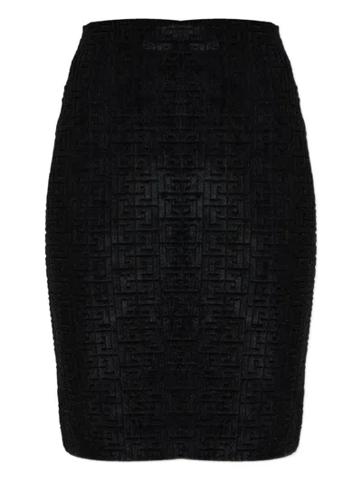 BALMAIN Monogram Midi Skirt Textured Patterned Design In Black
