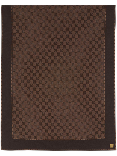 BALMAIN Monogram-pattern Fine-knit Scarf In Brown