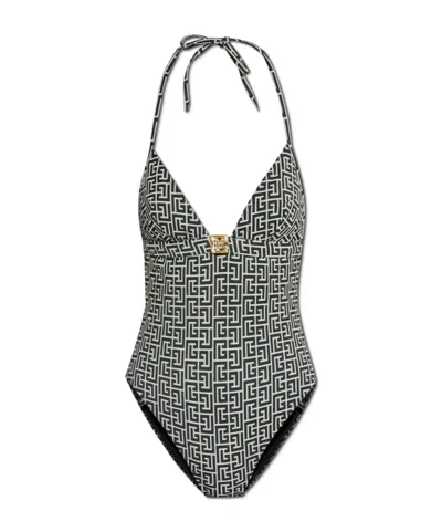 BALMAIN Monogram-pattern Swimsuit In Multi
