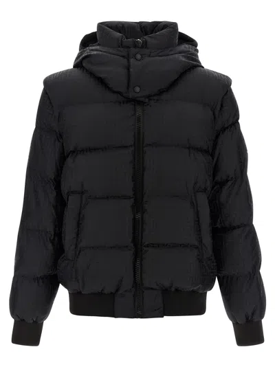 Short down jacket made from luxurious tone-on-tone jacquard Monogram PB Labirinto fabric, enhanced with shiny black polyamide. A contemporary piece that includes a removable hood, standing collar, and versatile long sleeves with removable cuffs, blending functionality with modern urban aesthetics.- Brand: Balmain - Product Type: Down Jacket - Fit: True to size - Material: 100% polyamide - Origin: Made in Moldova