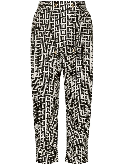 BALMAIN Monogram Print Drawstring Trousers In Black