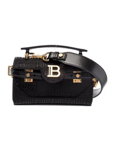 Balmain Shoulder Bag Black Nylon Monogram Pattern Gold-Tone Hardware Flat Handle & Single Shoulder Strap Single Exterior Pocket Suede Lining & Single Interior Pocket Snap Closure at Front Protective Feet at Base Includes Dust Bag | Balmain Monogram Shoulder Bag in Black