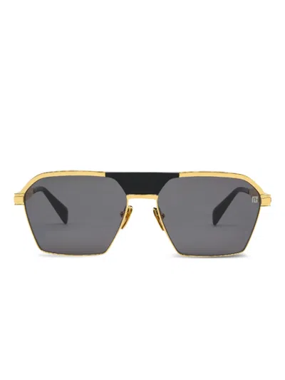 grey gold-tone detailing angular design nose bridge tinted lenses logo plaque on temple These glasses come with a protective case.