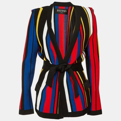 Pre-owned Multicolor Striped Knit Open Front Cardigan M