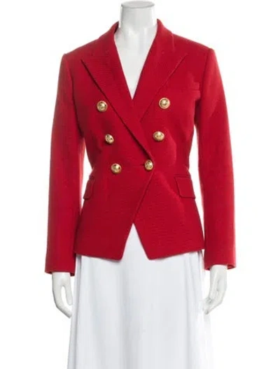 Balmain Blazer Red Printed Pointed Collar Flap Pockets & Double Breasted Designer Fit: Designed for a slim fit, those with a curvy figure may wish to take one size up. | Balmain Printed Blazer in Red, Women's US8, FR40 | M