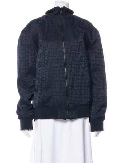 Balmain Bomber Jacket Blue Printed Stand Collar Slit Pockets & Zip Closure Designer Fit: Designed for a slim fit, those with a curvy figure may wish to take one size up. | Balmain Printed Bomber Jacket in Blue, Women's US18, FR50 | XXL
