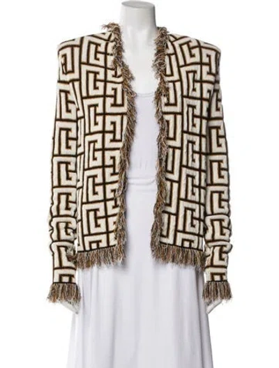 Balmain Evening Jacket Neutrals Printed Raw-Edge Trim & Collarless Designer Fit: Designed for a slim fit, those with a curvy figure may wish to take one size up. | Balmain Printed Evening Jacket in Neutrals, Women's US4, FR36 | S
