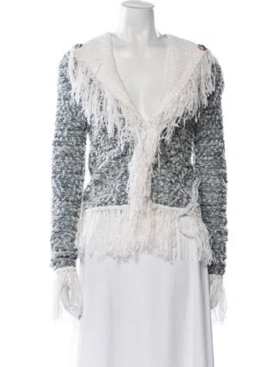 Balmain Evening Jacket Blue Printed Raw-Edge & Crystal Accents Collarless Hook and Eye Closure Designer Fit: Designed for a slim fit, those with a curvy figure may wish to take one size up. | Balmain Printed Evening Jacket w/ Tags in Blue, Women's US4, FR36 | S