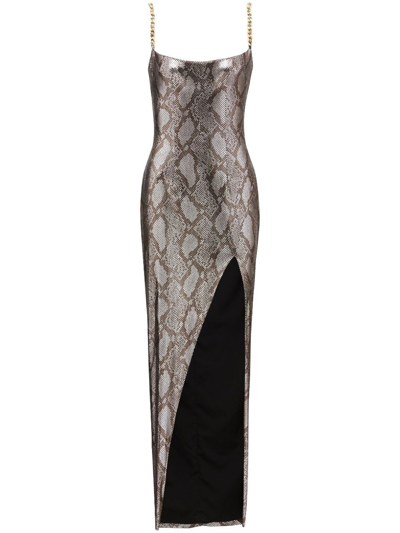 BALMAIN Python-print Metallic Maxi Dress In Silver