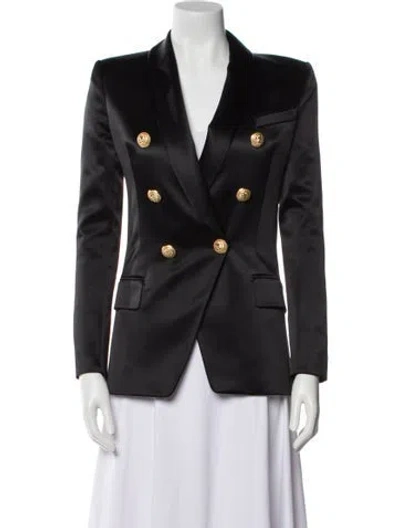 Balmain Silk Blazer Black Pointed Collar Flap Pockets & Button Closure Designer Fit: Designed for a slim fit, those with a curvy figure may wish to take one size up. | Balmain Silk Blazer in Black, Women's US2, FR34 | XS