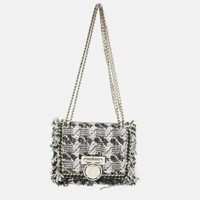 Pre-owned Silver/black Tweed And Sequins Box Shoulder Bag