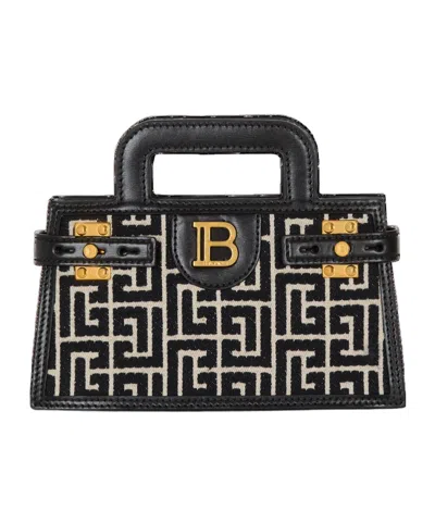 BALMAIN Small Geometric Pattern Handbag With Chain Strap In Black