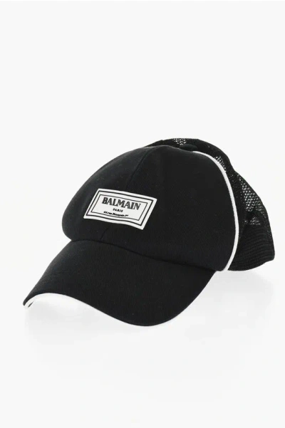 BALMAIN Solid Color Trucker Cap With Contrasting Details In Black