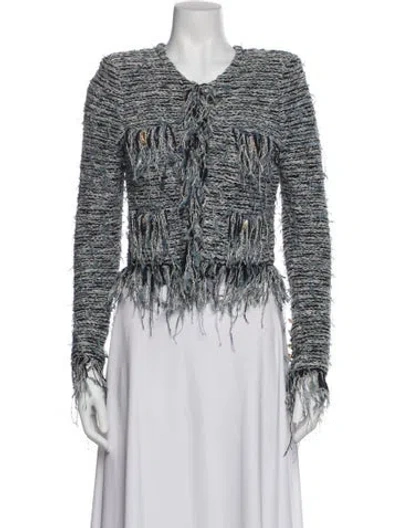 Balmain Evening Jacket Blue Tweed Pattern Fringe Trim Accent & Collarless Patch Pockets & Hook and Eye Closure Designer Fit: Designed for a slim fit, those with a curvy figure may wish to take one size up. | Balmain Tweed Pattern Evening Jacket in Blue, Women's US6, FR38 | M