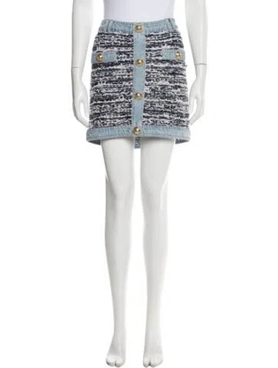 Balmain Skirt Blue & White Tweed Pattern Zip Closure Fit: Skirts by Balmain typically fit true to size. | Balmain Tweed Pattern Mini Skirt in Blue/White, Women's US10, FR42 | L