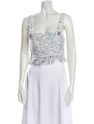 Pre-owned Tweed Pattern Square Neckline Top In White