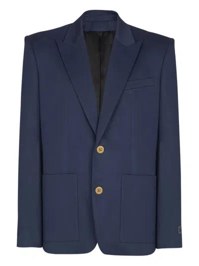 BALMAIN Twill Two-button Blazer In Blue