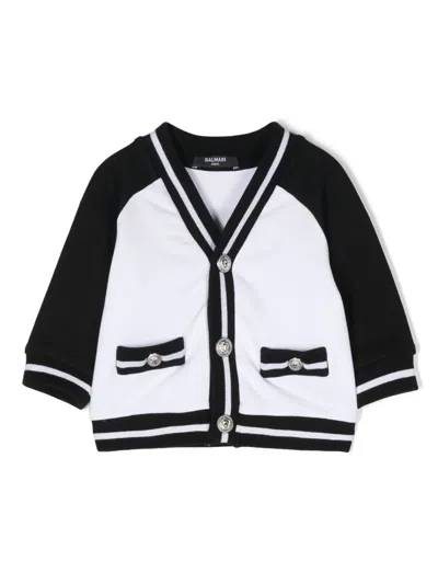 BALMAIN Babies' Two-tone Logo-engraved Button Jacket In White