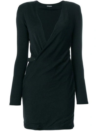 Olivier Rousteing continues his evolution of Balmain’s classic styles into the brand’s AW17 collection and beyond. Equal amounts decorative, daring and refined, these garments are an elevation of Parisian craftsmanship. Crafted from calf leather and a wool blend, this v-neck crossover dress from Balmain features a v-neck, a belted waist, long sleeves, a short length and a straight hem.