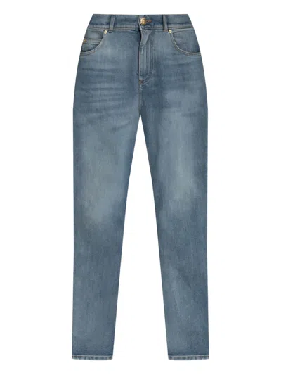 Decorated with belt loops, button and zip fastening, and five pockets.