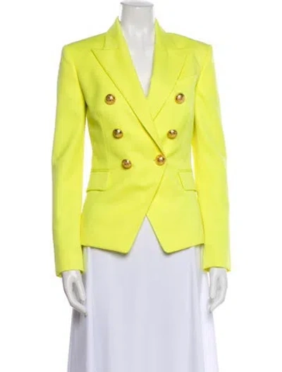 Balmain Wool Blazer Yellow Pointed Collar Flap Pockets Designer Fit: Designed for a slim fit, those with a curvy figure may wish to take one size up. | Balmain Wool Blazer in Yellow, Women's US2, FR34 | XS