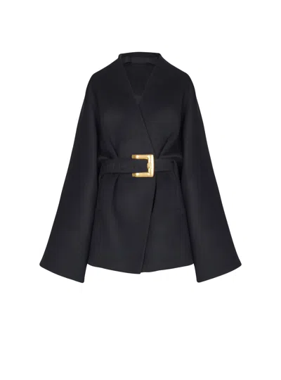 BALMAIN Wool-blend Oversized Wrap Coat In Black