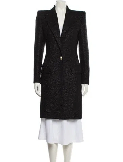 Balmain Wool Coat Black Tweed Pattern Glitter Accents & Pointed Collar Knee-Length Flap Pockets & Button Closure Fit: Coats by Balmain typically fit true to size. | Balmain Wool Tweed Pattern Coat in Black, Women's US4, FR36 | S