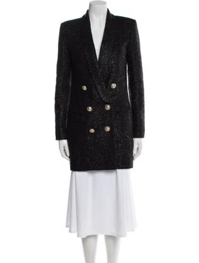 Balmain Wool Peacoat Black Tweed Pattern Pointed Collar Short Slit Pockets & Button Closure Fit: Coats by Balmain typically fit true to size. | Balmain Wool Tweed Pattern Peacoat in Black, Women's US4, FR36 | S