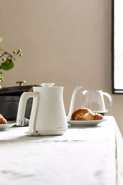 Lightweight and easy to use, BALMUDA The Kettle is the perfect size for everyday kitchen needs. It holds enough water for three standard cups of coffee or two large mugs. Due to our tireless ergonomic research, we've created a pouring experience unlike any other. The handle fits snugly into your hand and the hot water flows smoothly from the nozzle, letting you direct the flow exactly where you want it to go. From carefully made pour-over coffee to ordinary cups of tea, this kettle is a beautiful and comfortable companion. Emitting a delicate glow from a tiny neon tube in the handle, the kettle's power light is a unique feature that can be seen from any angle. This attention to detail helps enrich even the few minutes it takes to boil water. What makes our product unique? By thinking out of the box, we make appliances offering unprecedented value. Appliances were invented to eliminate inconvenience but what people seek in tools today are experiences whether surprising, moving, or joyful. BALMUDA's creations are designed to deliver thrilling, wonderful experiences. Made of steel and plastic. Clean with damp cloth. Imported Dimensions: W 10.6 in. × D 5.6 in. × H 7.6 in. The Kettle by BALMUDA in White, Plastic at Anthropologie