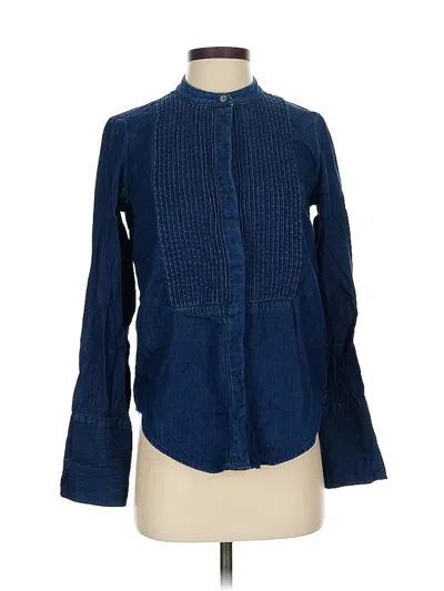 Banana Republic Long Sleeve Blouse, Size: X-Small. Item Details: Blue, Mock Neckline, Velvet, Women's Tops, 100% Cotton