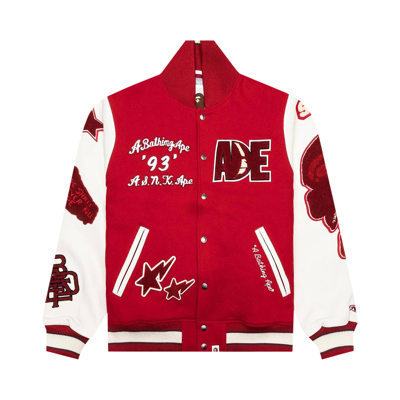 Pre-owned Multi Motif Varsity Jacket 'red'