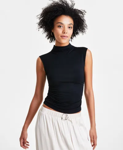 BAR III Side-ruched Mock-neck Sleeveless Top, Regular & Petites, Created For Macy's In Deep Black
