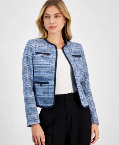 Women's Tweed Open-front Jacket, Exclusively At Macy's In Cadet Dusk Multi
