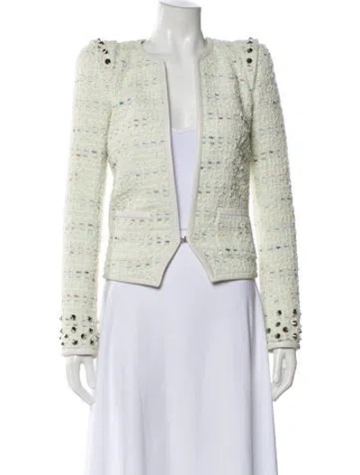 Barbara Bui Nylon Evening Jacket Blue & Neutrals Tweed Pattern Leather & Studded Accents Collarless Patch Pockets & Hook and Eye Closure Fit: Jackets by Barbara Bui typically fit true to size. | Barbara Bui Nylon Tweed Pattern Evening Jacket in Blue/Neutrals, Women's US4, FR36 | S