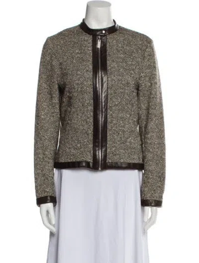 Barbara Bui Evening Jacket Brown Printed Leather Trim Embellishment & Collarless Zip Closure Fit: Jackets by Barbara Bui typically fit true to size. | Barbara Bui Printed Evening Jacket in Brown, Women's US8, FR40 | M