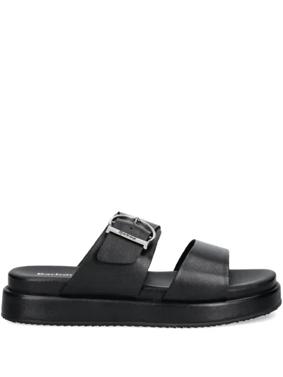 An adjustable instep strap and contoured footbed provide a customized feel on a casual slide sandal rendered in supple leather and grounded by a treaded sole. Adjustable strap with buckle closure Leather upper/synthetic lining and sole Imported